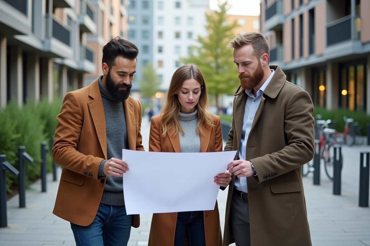 Groupe d'urbanistes examinant un plan de zonage en ville